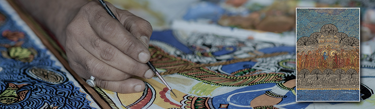 SC Suman is a self taught artist who watched his grandmother make ritual paintings in the Mithila tradition. He is a textile designer by profession and also is a celebrated radio host in Biratnagar. He has held 14 solo shows in Nepal, France, Japan, Australia and the Netherlands. He has won many awards including the Rastra Pratibha Puraskar. Suman has been served as a Council Member and Head of Department of the Folk Arts (2071-2075 B.S.)at Nepal Academy of Fine Arts. Das has been actively working in various organizations for the development of art and artists for more than 20 years. He has served as a "Chief Judge" for several different art competitions. Das organized the National level Art Workshops in Biratnagar in 2002-2015. He is currently researching Mithila, Tharu, Santhal, Dhimal, [...]